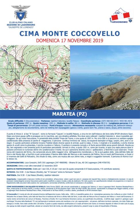 IL COCCOVELLO è il monte più alto del versante tirrenico dell’Appennino lucano. Dalla vetta, 1505 m, è possibile godere di un meraviglioso panorama che si affaccia su tutto il Golfo di Policastro fino al basso Cilento, sulla Valle del Noce fino al massiccio del Sirino e all’alta Valle del Sinni, e sulla Valle del Mercure fino al massiccio del Pollino e i monti dell’Orsomarso. Il monte rientra nel territorio dei comuni di Maratea, Trecchina e Rivello. Per il suo fortissimo fenomeno carsico, sia superficiale che profondo, è definito dagli esperti di geologia e geomorfologia “Gruviera della Basilicata”. È il più bell’esempio di ambiente carsico del meridione e tra i più rappresentativi, nel genere, dell’intero territorio nazionale, che tutta l’Italia speleologica ci invidia. Sono state censite oltre 120 doline. E grazie a questa massiccia carsificazione si è creato all’interno del monte un immenso deposito di milioni di metri cubi di acqua, che sgorga sia dalle sorgenti superficiali, ubicate sul versante Nord del monte, sia dalle sorgenti sottomarine, presenti lungo la costa di Acquafredda di Maratea.