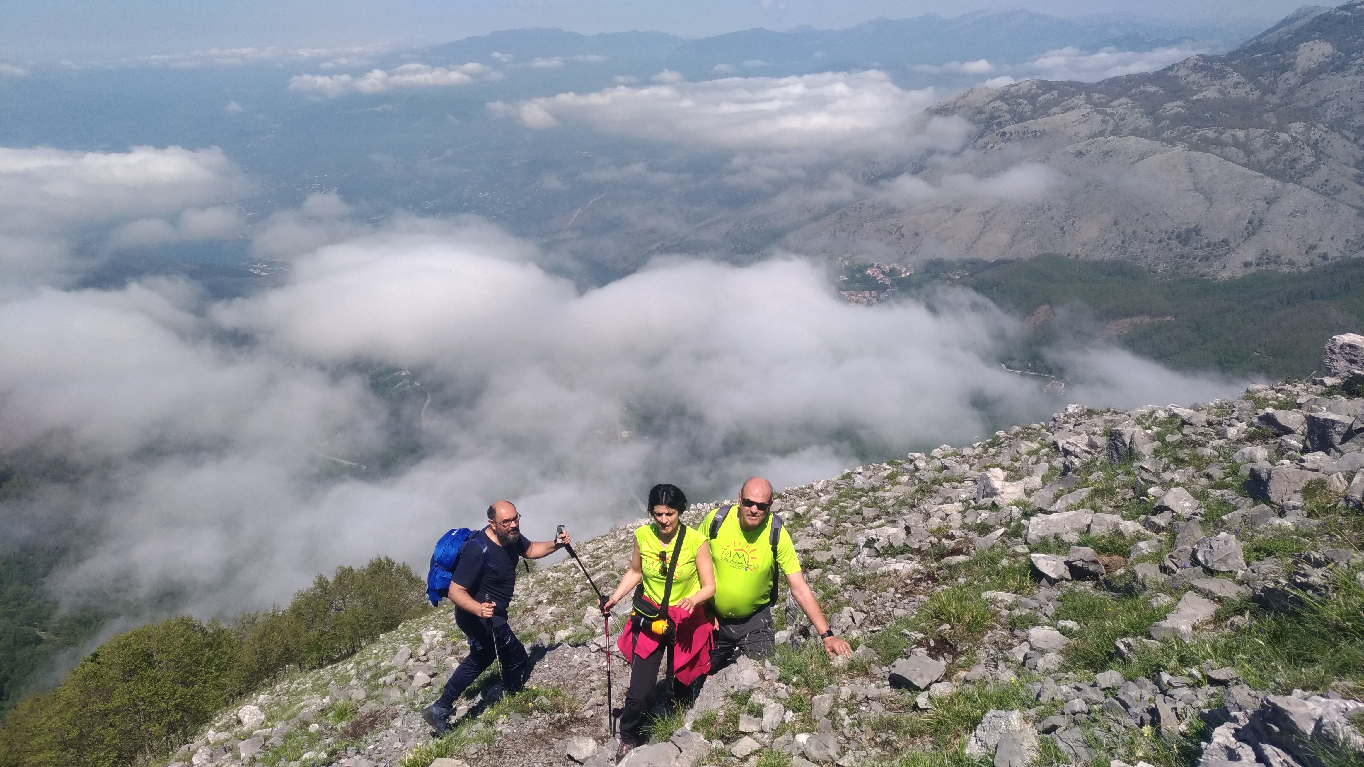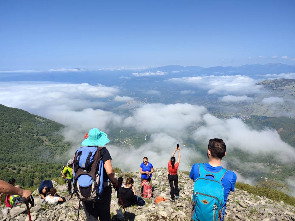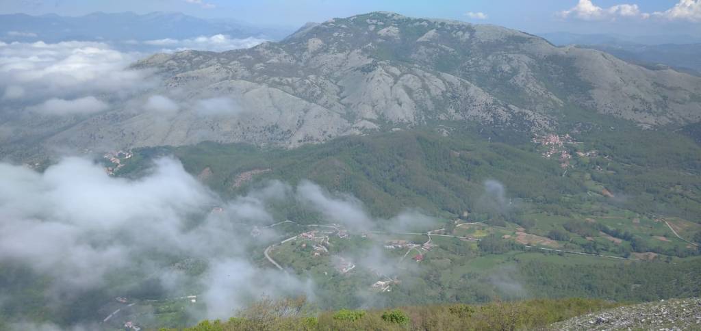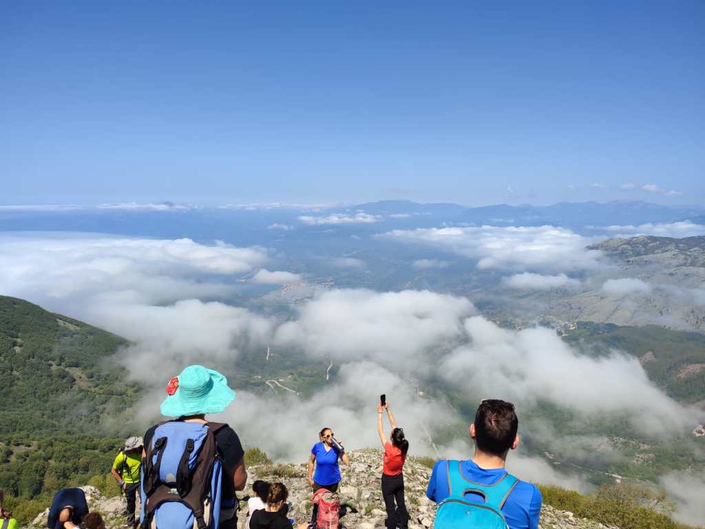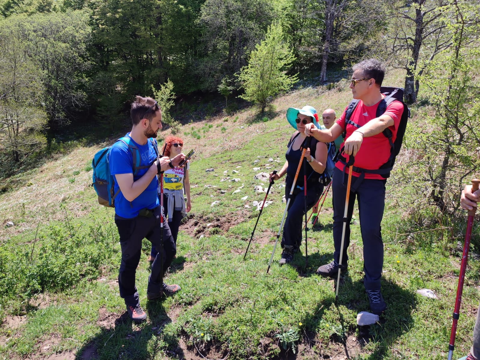 Il punto di ritrovo è al bar “A’ Carcara”, vicino la Farmacia “D’Aniello”, in località Palazzo, a circa tre km dall’imbocco del bivio della SP104 direzione Sapri. Dopo una breve pausa caffè si prosegue con le macchine, per una stradina asfaltata, fin dove sono collocati i ripetitori televisivi e dove è possibile parcheggiare. Da qui inizia l’escursione, in prossimità della località Timpa del Tuono, a una quota di 1097 m. Per circa 500 m si percorre un sentiero spoglio caratterizzato dalla presenza di piante di maggiorana. Il percorso continua immerso nel bosco, tra stupendi esemplari di faggi, carpini, olmi, aceri e castagni. In questo particolare ambiente trovano l’habitat ideale diverse specie di animali, quali la volpe, il riccio, il cinghiale e lo scoiattolo, e anche diverse specie di uccelli come la ghiandaia, il picchio muratore e l’allocco. Il sentiero si presenta comodo e di facile percorribilità senza grandi dislivelli. Risulta pulito, ben segnalato e non presenta punti di particolare pericolosità. Arrivati in cima, a quota 1511 m, come per incanto, si apre una vasta pianura dove si possono ammirare le numerose doline che caratterizzano il monte. Da qui il panorama diventa unico e spettacolare: a Nord-Est si può osservare l’imponenza del massiccio del Sirino, che comprende alcune delle maggiori cime dell’appennino meridionale; a Est si può godere della vista dell’alta Valle del Sinni e del Monte Alpi; a Sud-Est si può contemplare il fascino della Valle del Mercure e del massiccio del Pollino, fino ai monti dell’Orsomarso; a Ovest ci si innamora del Golfo di Policastro, che chiude la vista, come una musica alle sue ultime note, a magici e suggestivi tramonti. Il percorso di ritorno è sulla stessa via.