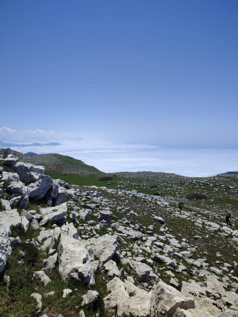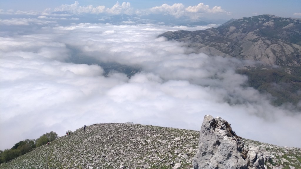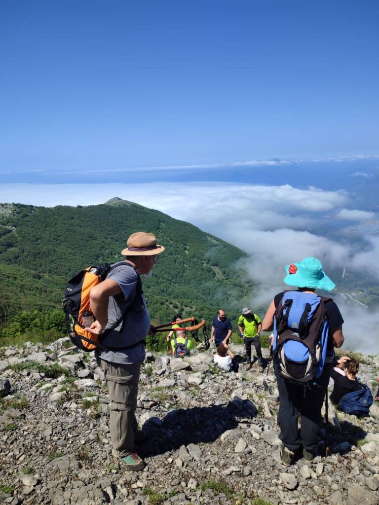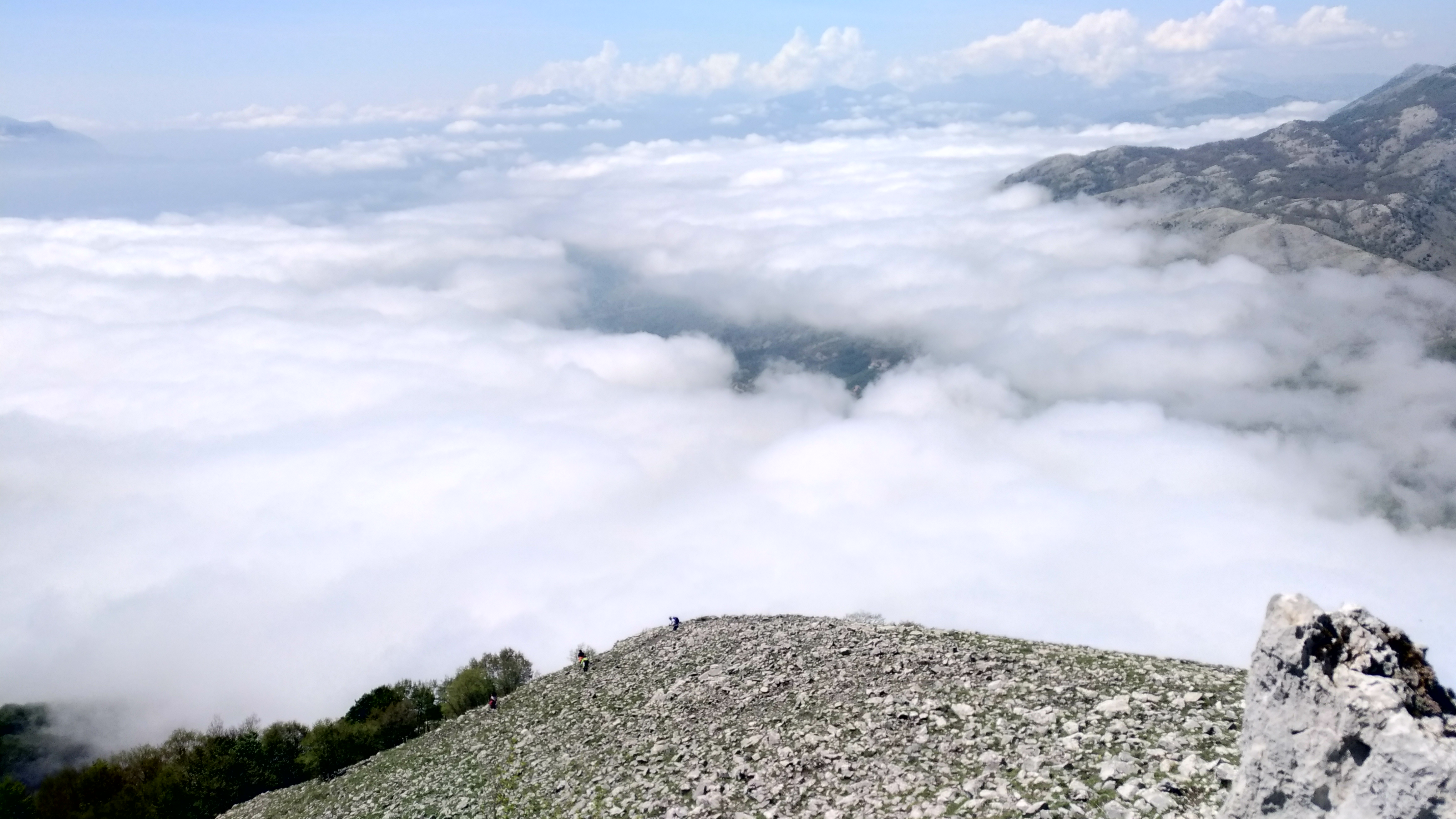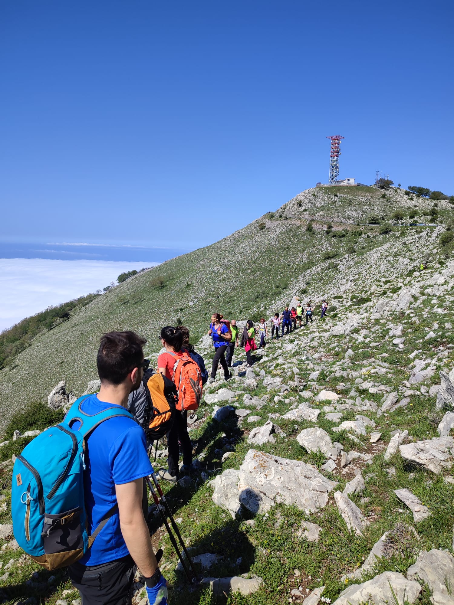 Il punto di ritrovo è al bar “A’ Carcara”, vicino la Farmacia “D’Aniello”, in località Palazzo, a circa tre km dall’imbocco del bivio della SP104 direzione Sapri. Dopo una breve pausa caffè si prosegue con le macchine, per una stradina asfaltata, fin dove sono collocati i ripetitori televisivi e dove è possibile parcheggiare. Da qui inizia l’escursione, in prossimità della località Timpa del Tuono, a una quota di 1097 m. Per circa 500 m si percorre un sentiero spoglio caratterizzato dalla presenza di piante di maggiorana. Il percorso continua immerso nel bosco, tra stupendi esemplari di faggi, carpini, olmi, aceri e castagni. In questo particolare ambiente trovano l’habitat ideale diverse specie di animali, quali la volpe, il riccio, il cinghiale e lo scoiattolo, e anche diverse specie di uccelli come la ghiandaia, il picchio muratore e l’allocco. Il sentiero si presenta comodo e di facile percorribilità senza grandi dislivelli. Risulta pulito, ben segnalato e non presenta punti di particolare pericolosità. Arrivati in cima, a quota 1511 m, come per incanto, si apre una vasta pianura dove si possono ammirare le numerose doline che caratterizzano il monte. Da qui il panorama diventa unico e spettacolare: a Nord-Est si può osservare l’imponenza del massiccio del Sirino, che comprende alcune delle maggiori cime dell’appennino meridionale; a Est si può godere della vista dell’alta Valle del Sinni e del Monte Alpi; a Sud-Est si può contemplare il fascino della Valle del Mercure e del massiccio del Pollino, fino ai monti dell’Orsomarso; a Ovest ci si innamora del Golfo di Policastro, che chiude la vista, come una musica alle sue ultime note, a magici e suggestivi tramonti. Il percorso di ritorno è sulla stessa via.