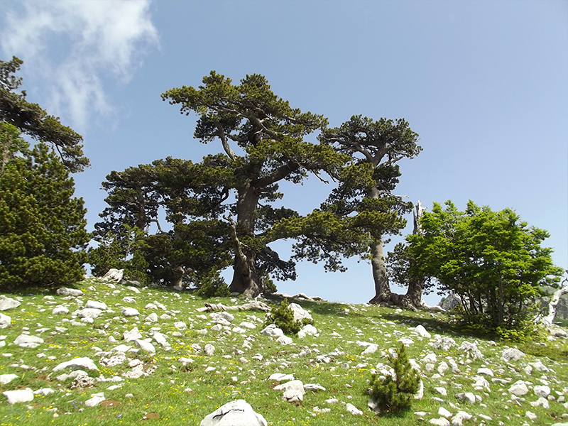 Al ritorno, lungo il tragitto “Sentiero Italia”, lasceremo la traccia in corrispondenza del “Giardino degli Dei” per ammirare alcuni pini loricati.