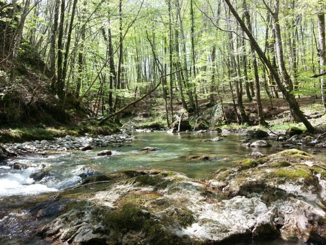 Nonostante le tracce dell’intensa frequentazione antropica dei giorni festivi, l’ambiente è subito fiabesco. Grandi ontani e pioppi neri racchiudono l’alveo entro cortine di fusti colonnari, creando una galleria verde che si riflette nelle acque vivaci e limpide, mentre la luce che giunge filtrata dalle chiome fitte degli alberi accentua l’atmosfera incantata.