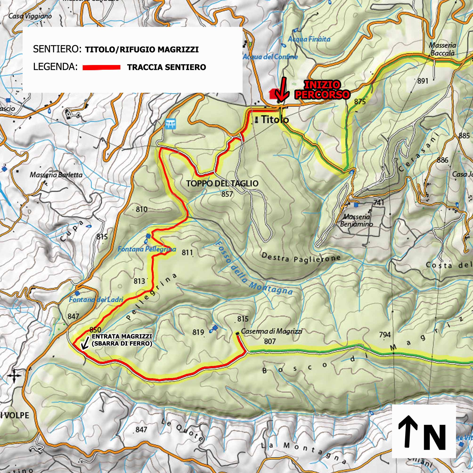 NOTE Da Sella del Titolo, prima di partire per il trekking, si dovranno avvicinare le macchine all’ingresso della Foresta di Magrizzi, il punto dove terminerà l’escursione. La distanza tra una località e l’altra è di circa 3 km.