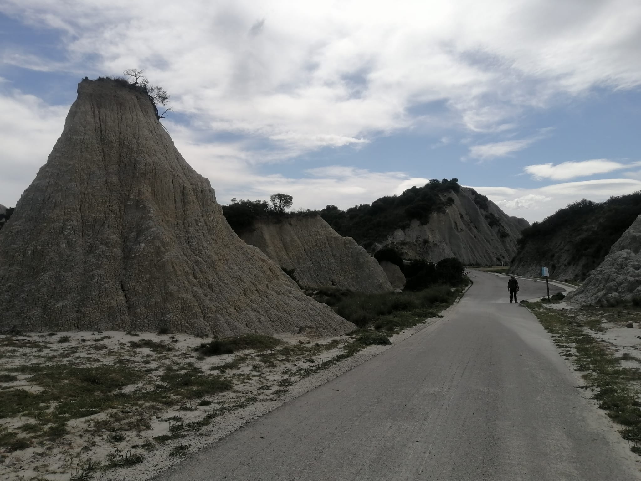 Un tratto di asfalto costeggiato da formazioni calanchive. Il tratto asfaltato incrocia un sentiero che attraversa la parte più bella del parco. Percorreremo il sentiero di “Don Luigino”.