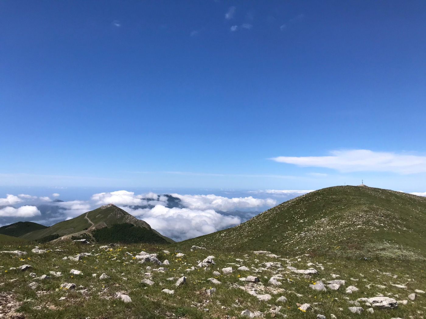 Arrivati in cima, la visuale ripaga la fatica e l’impegno profuso per raggiungerla, il nostro pranzo a sacco ci ridarà le forze necessarie per proseguire con la discesa prevista per un tratto lungo il T06 del Sentiero Italia fino allo sgancio della seggiovia, risalendo per Scazzariddo per poi riscendere verso Laudemio, lungo tutta la cresta.