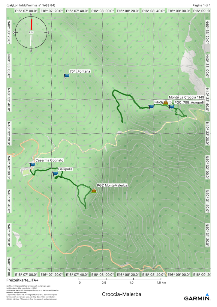 Ci incontriamo a Caserma Palazzo, sede del Parco Regionale di Gallipoli Cognato e delle Piccole Dolomiti Lucane, e proseguiamo in macchina fino all’incrocio del Belvedere. Partiamo dal Belvedere per ammirare il paesaggio e le Dolomiti Lucane, da qui saliamo sulla cima di Monte Croccia e quindi raggiungiamo il sito di Pietra della Mola, calendario che segna il solstizio attraverso la proiezione del sole attraverso una fessura nella pietra, risalente a circa 8000-10000 anni fa. Ritorniamo indietro attraversando la necropoli Osco Sannita e riscendiamo al Belvedere. Torniamo con le macchine Alla sede del Parco. Dalla Caserma Palazzo, un antico insediamento di monaci basiliani prima, poi di benedettini e ci dirigiamo verso l’antica città di Gallipolis, ruderi di un piccolo centro medievale. Se abbiamo tempo proseguiamo verso monte Malerba, ritorniamo a Gallipolis per ritornare al parcheggio presso la Caserma Palazzo.