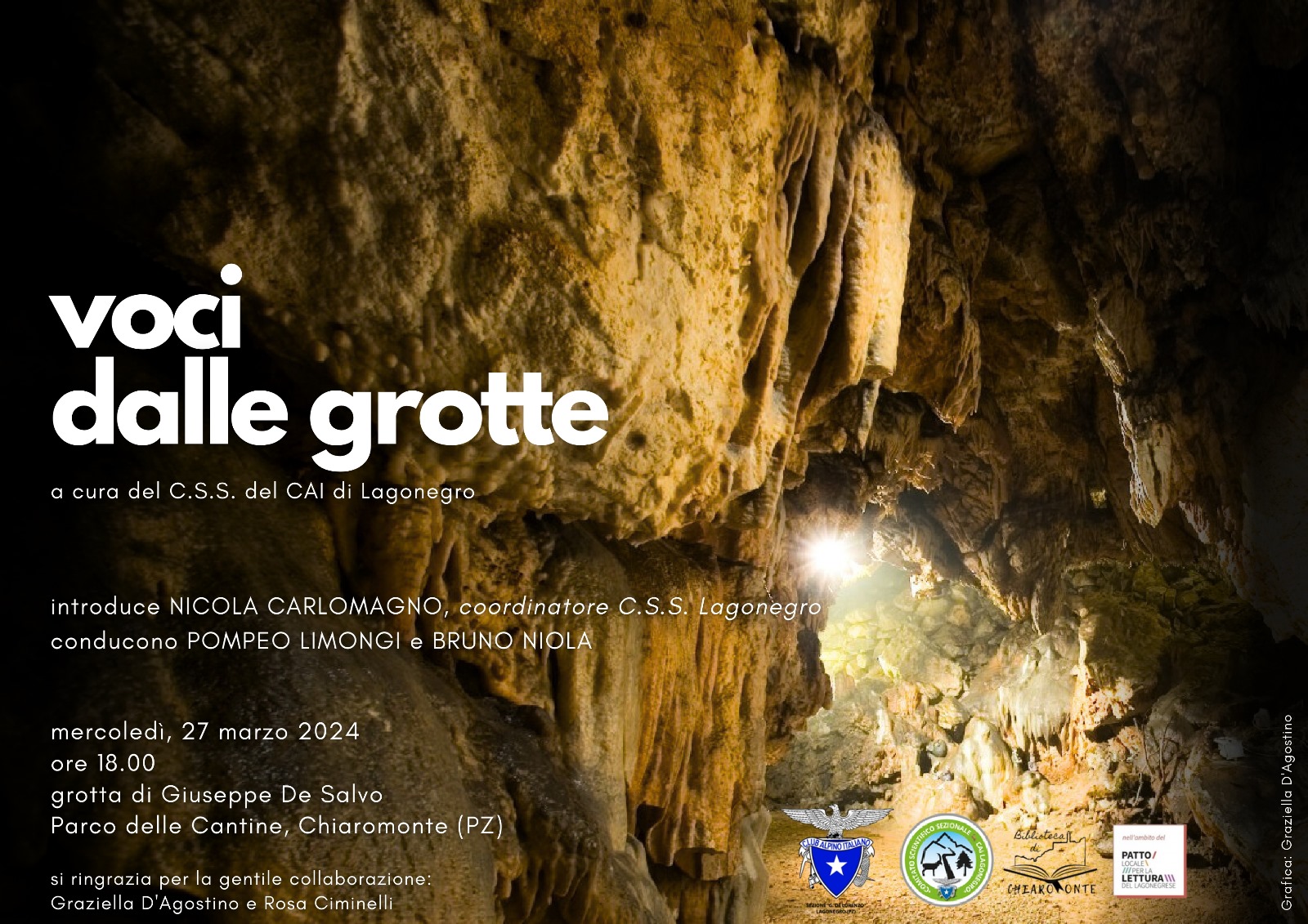 Mercoledì 27 marzo 2024, alle ore 18.00, a Chiaromonte, gli amanti dell’avventura, gli appassionati di storia e coloro che desiderano sfidare l’oscurità delle profondità sotterranee sono invitati a partecipare a “Voci dalle Grotte”. Questo evento straordinario sarà un’opportunità senza pari per immergersi nell’affascinante mondo delle grotte e dei miti che le circondano.