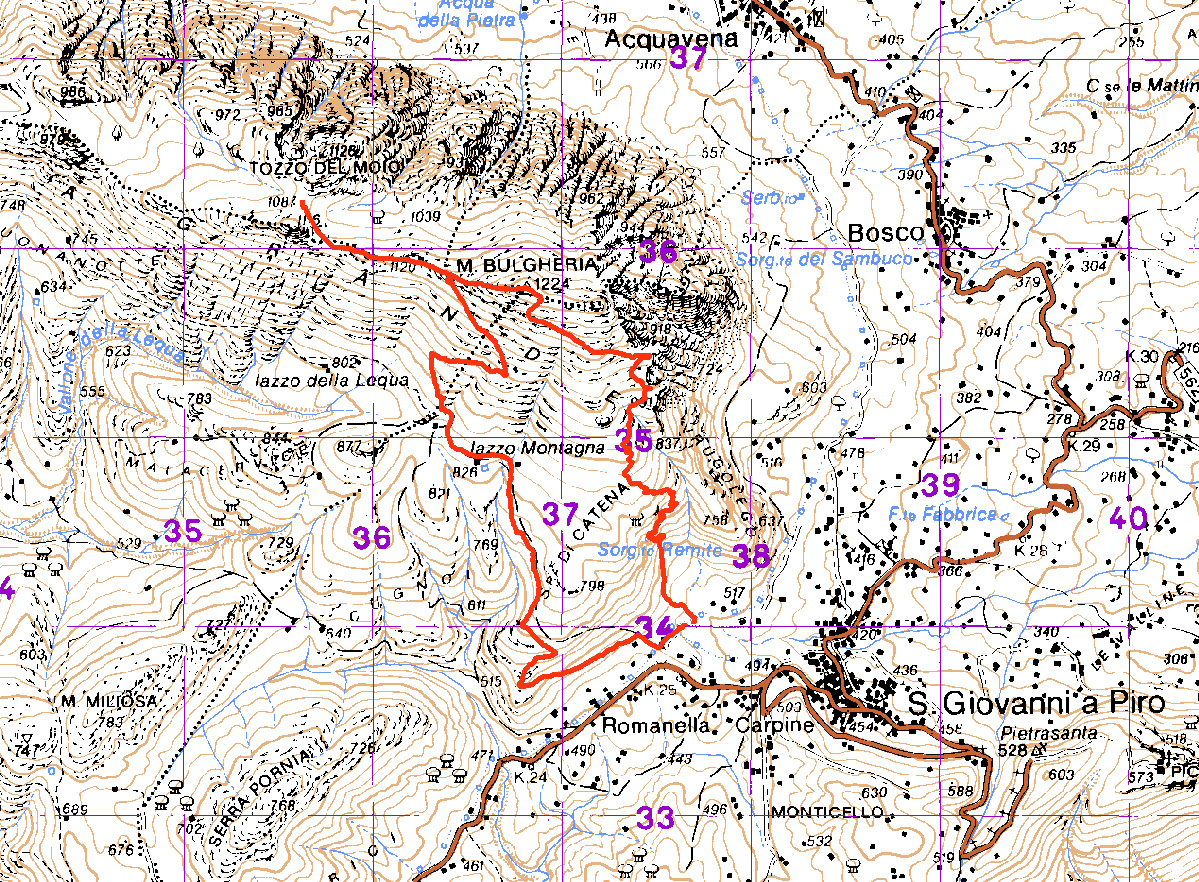 Il monte Bulgheria rende l’ultima propaggine del Cilento davvero unica e spettacolare. Si tratta di una montagna non altissima con i suoi 1225 metri, ma la sua vicinanza al mare rende i suoi sentieri di una panoramicità incredibile. Questo programma prevede una escursione ad anello: il Sentiero degli Eremiti nella prima parte che affaccia sul Golfo di Policastro e, per il ritorno, il sentiero della Lequa, comoda carrareccia che affaccia sul versante sud-ovest della montagna. La cima del Monte Bulgheria (1225 m s.l.m.) si può raggiungere in vari modi. L’ascesa più interessante e caratteristica è sicuramente quella che inizia dal campo sportivo di San Giovanni a Piro (530 m s.l.m.). Qui si prende un sentiero che conduce alla parete rocciosa della Serra di Catena dove sgorga l’antica Sorgente degli Eremiti. Si continua zigzagando fino ad incontrare un boschetto di elci, addentrandosi nel quale, dopo una breve e non proprio agevole salita si raggiunge la Grotta degli Eremiti, eremo, sul finire del primo millennio, di monaci italo-greci, poi usata dai pastori come ricovero. Si riprende il sentiero lungo il costone pietroso. Entrando in un bosco di elci si raggiunge lo “Iazzo della Spina”, una radura che il silenzio e l’ambiente rendono adatta al bivacco. Si prosegue verso Chiaia Grande. Dopo una breve salita la boscaglia inizia a diradarsi e si apre un suggestivo scenario, quasi lunare. Alla fine di una comoda salita, dove finisce anche il sentiero, appare una delle “meraviglie” che offre questa bellissima montagna: maestosi faraglioni ed un arco naturale, singolare fenomeno di erosione della roccia, dominano il bellissimo panorama sull’intero Golfo di Policastro. Continuando l’ascesa verso nord-est si raggiunge prima un rudere in pietra, poi, dopo una serie di terrazze, un omino in pietra segnala l’arrivo sulla cresta del monte. Un comodo cammino consente di raggiungere la vetta dove è possibile ammirare un panorama unico sul golfo di Policastro, sui monti Cervati, Sirino e Pollino. Procedendo verso nord-ovest raggiungiamo il rifugio Tozzo del Moio per il pranzo e per ricaricare le energie prima di affrontare il ritorno che avverrà lungo la comoda sterrata della Lequa che si prende dopo aver attraversato un fitto bosco di lecci. Si tratta della vecchia mulattiera, oggi diventata strada carrabile sterrata, che un tempo collegava San Giovanni a Piro con Camerota.