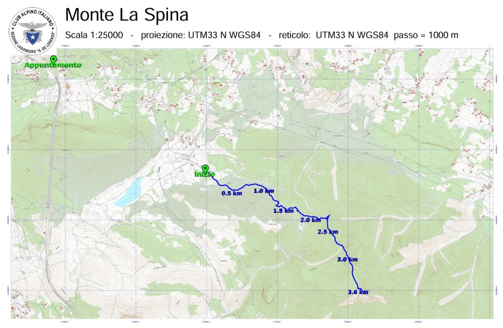 Coordinate partenza sentiero: WGS 84 UTM 33 575986.3 E 4434698.6 N 936.1m