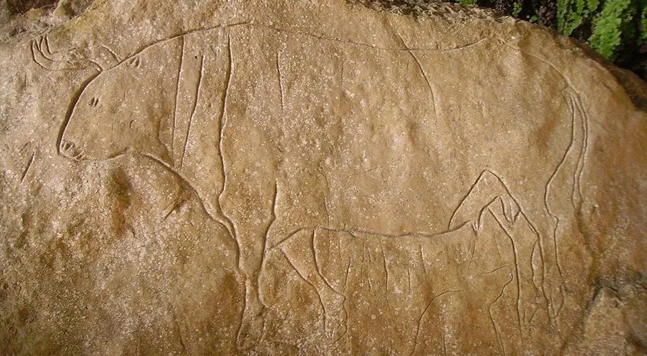 Tali rinvenimenti rendono il sito anche una delle testimonianze dell’arte preistorica anche a livello europeo. All’esterno si trovano anche alcune incisioni rupestri, tra le quali la più importante è un graffito su un grande masso, di quasi due metri e mezzo di larghezza, situato al limite tra l’area interna di grotta e quella esterna del riparo, raffigurante un bovide, l’uro, Bos primigenius.