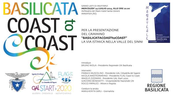 PRESENTAZIONE DEL CAMMINO "BASILICATACOASTTOCOST" NELLA CORNICE DELLA MANIFESTAZIONE CINEMATOGRAFICA "MARATEALE" PRESSO L'ANFITEATRO DELL'HOTEL SANTAVENERE A MARATEA. APPUNTAMENTO ALLE ORE 20.00 SARANNO PRESENTI IL VICEPRESIDENTE GENERALE DAL CLUB ALPINO ITALIANO GIACOMO BENEDETTI E L'ATTORE-REGISTA ROCCO PAPALEO